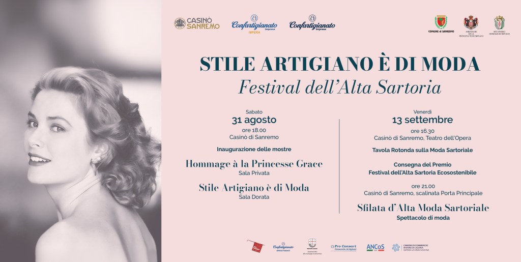 Stile Artigiano è di Moda è organizzato da Confartigianato Imperia in collaborazione al Casinò di Sanremo, Confartigianato Imprese e Confartigianato Piemonte, in compartecipazione con la Camera di Commercio e Regione Liguria, il supporto di ANCoS e con il patrocinio del Comune di Sanremo, dell’Ambasciata del Principato di Monaco e dei Siti Storici dei Giardini Grimaldi. È doveroso ringraziare Fulvio Gazzola, Sindaco di Dolceacqua e Presidente dell’Associazione Siti Storici Grimaldi, il cui intervento è stato decisivo per la realizzazione della mostra “Hommage à la Princesse Grace”.