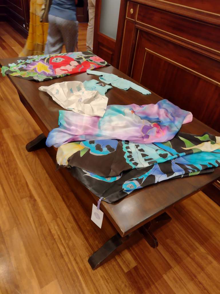 Nella mostra dell’artigianato ligure e nazionale sono state esposte le eccellenze artigiane del nostro territorio. Il pubblico ha potuto ammirare le borse di Be Your Bag e Hussain Harba, i gioielli de Il Pozzo dei Desideri della famiglia Michelutti, le chitarre e le lampade della liuteria di David Ferrarese, le essenze di Vaquer Profumatori, la filigrana di Filigranart, le cravatte di Marinella, gli abiti di Basile Diffusione Moda, Jasha, Neris Style e Unica Sartoria Mortara e gli abiti dipinti a mano su seta di Roberta Baiardi.